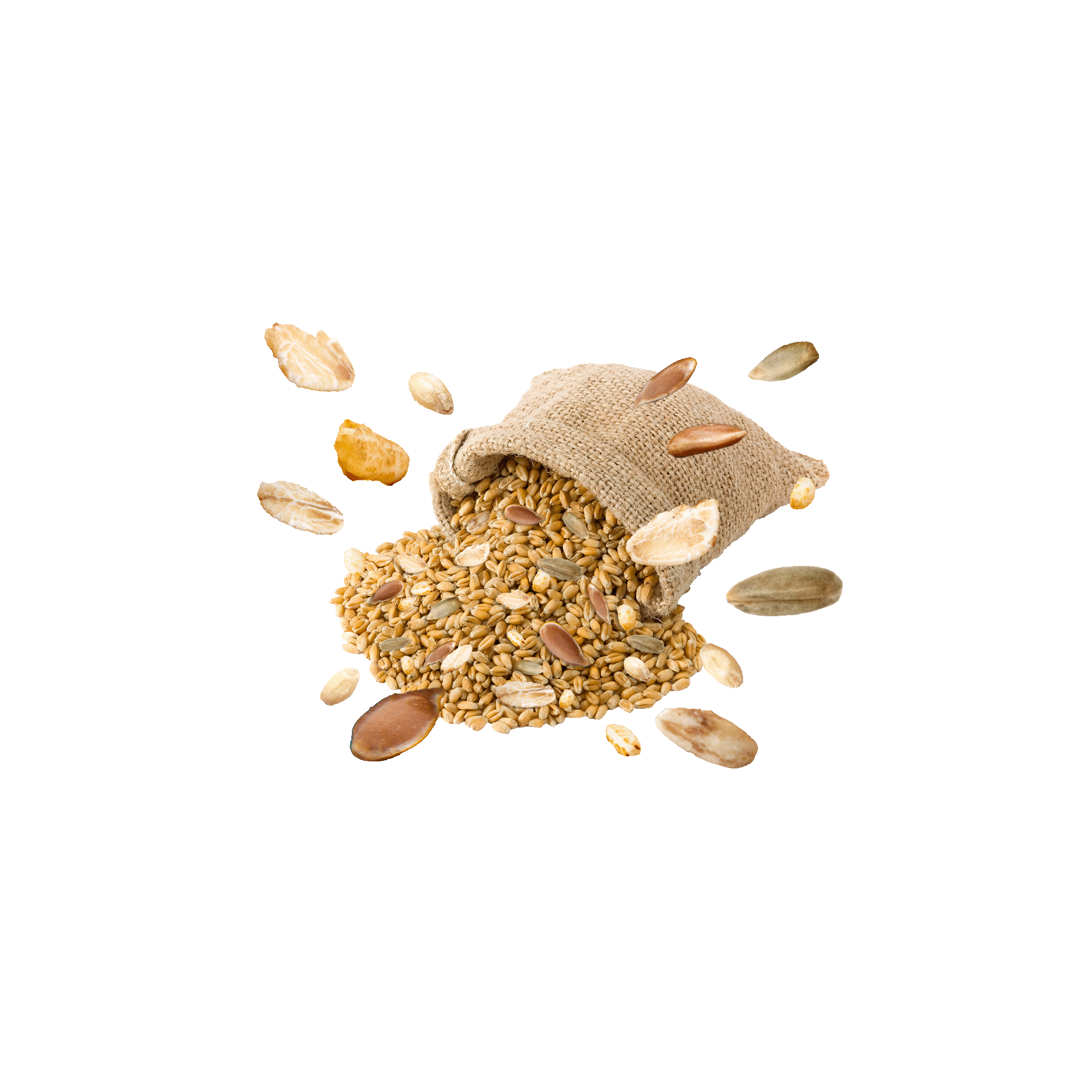 İçindekiler: Tahıl Karışımı (%95,5) [Pirinç (%45), Mısır, Esmer Buğday, Beyaz Buğday, Arpa, Çavdar, Yulaf, Siyez (%4,5)], Keten Tohumu (%3), Kaya Tuzu.